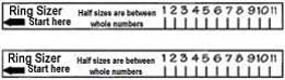 Ring sizer should be approximately 2 11/16 inches when printed in full size.. To print: click on sizer which will show a new screen. Hit File and Print